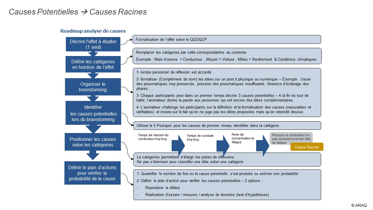 Ci-dessous un schéma qui montre l’approche méthodologique (ISHIKAWA et 5 pourquoi)